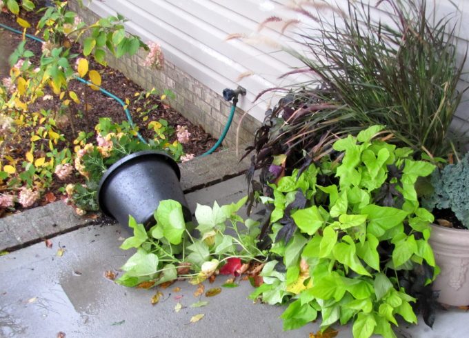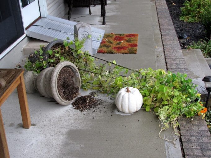 my Black-Eyed-Susan vine and pumpkin in an urn were blown over